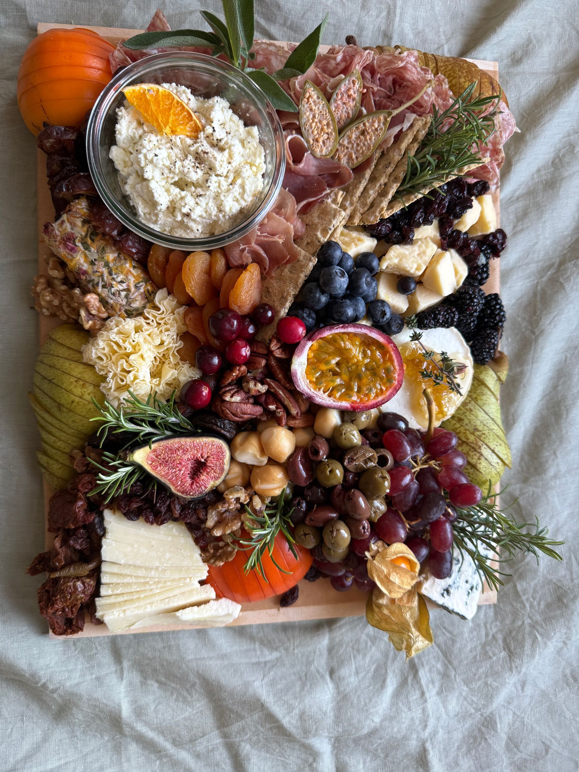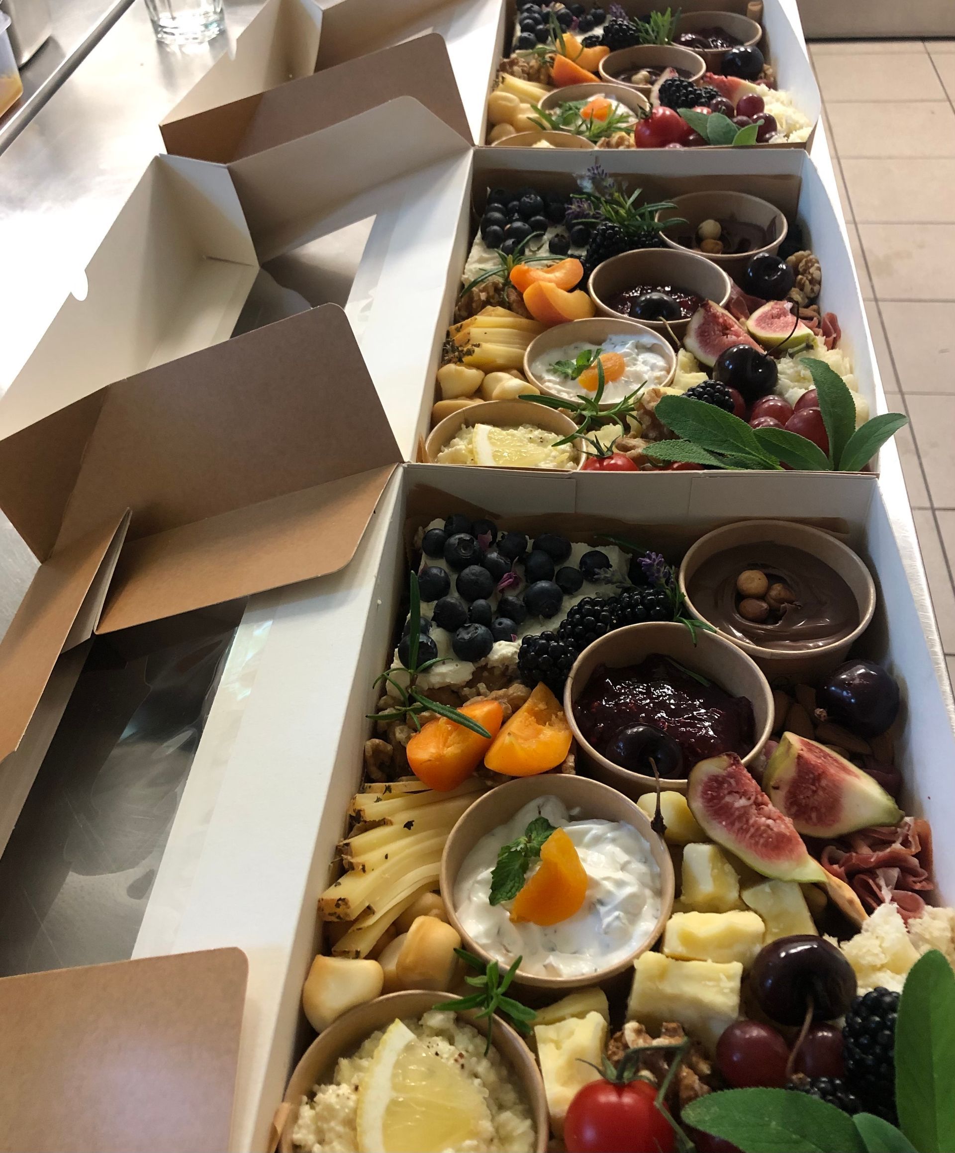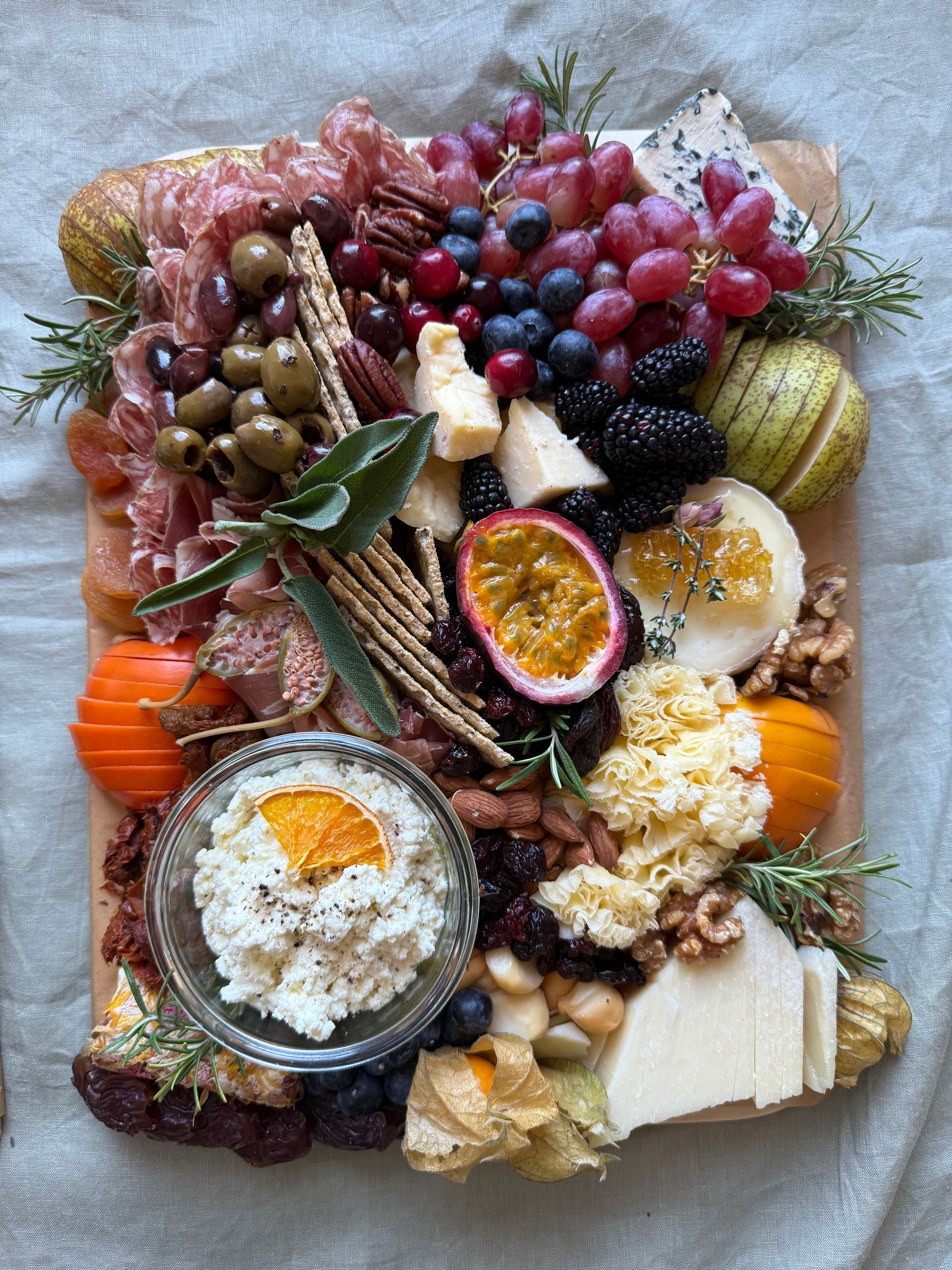 - Charcuterie, Weich & Hartkäse, Nüsse, Obst der Saison, Oliven, Kräuter, selbstgemachte Dips & Bowls, Fingerfood, Salate