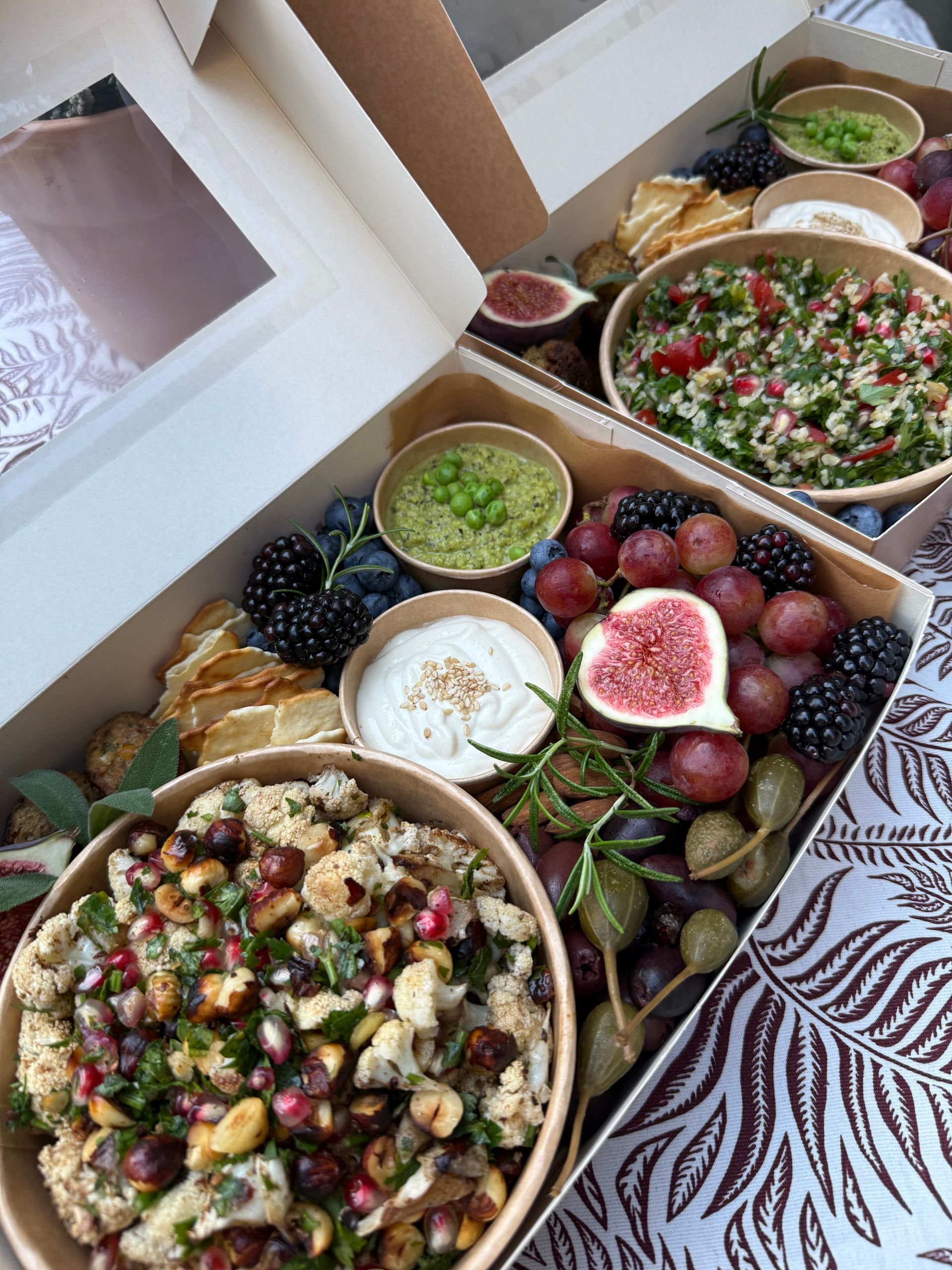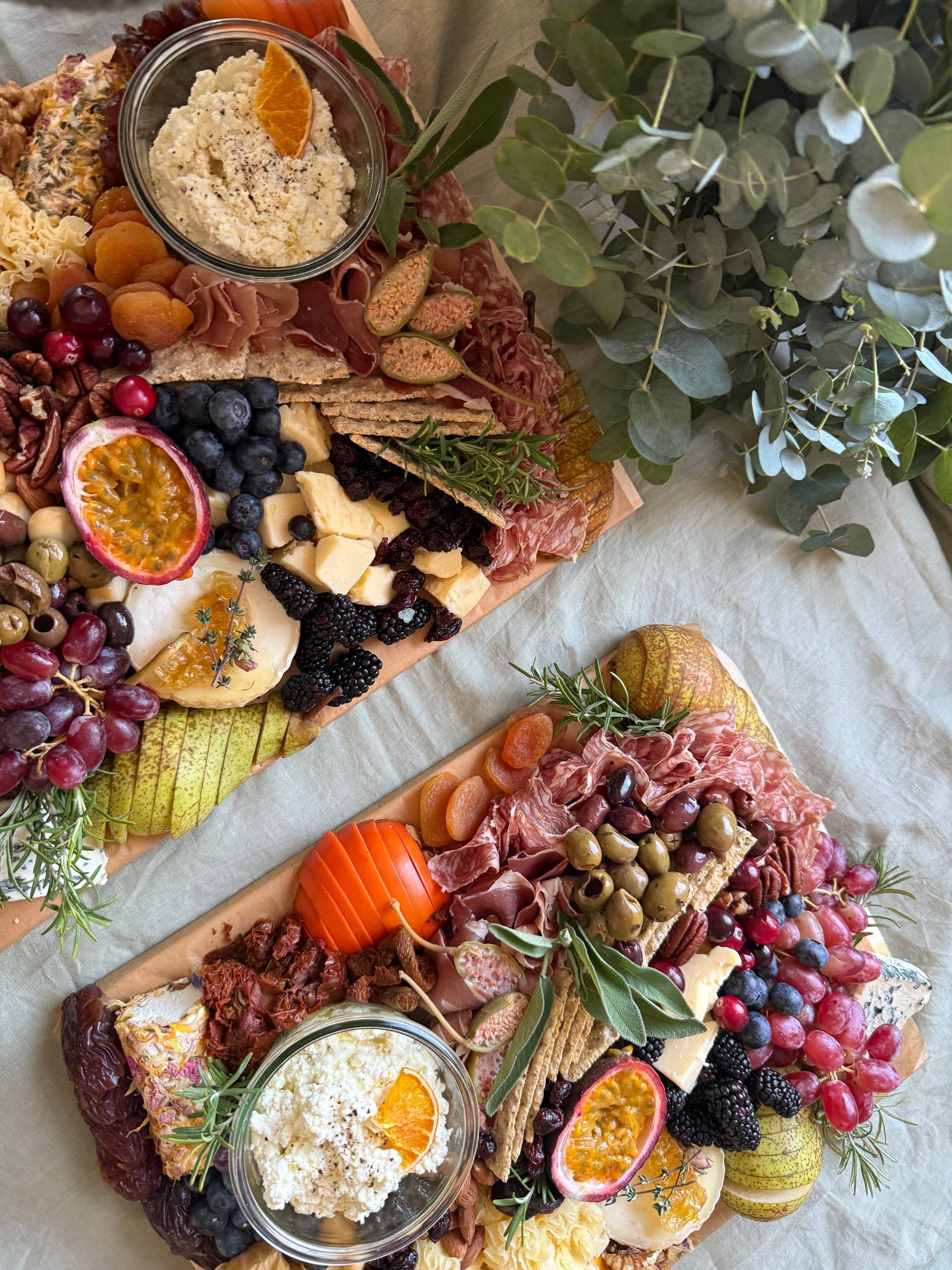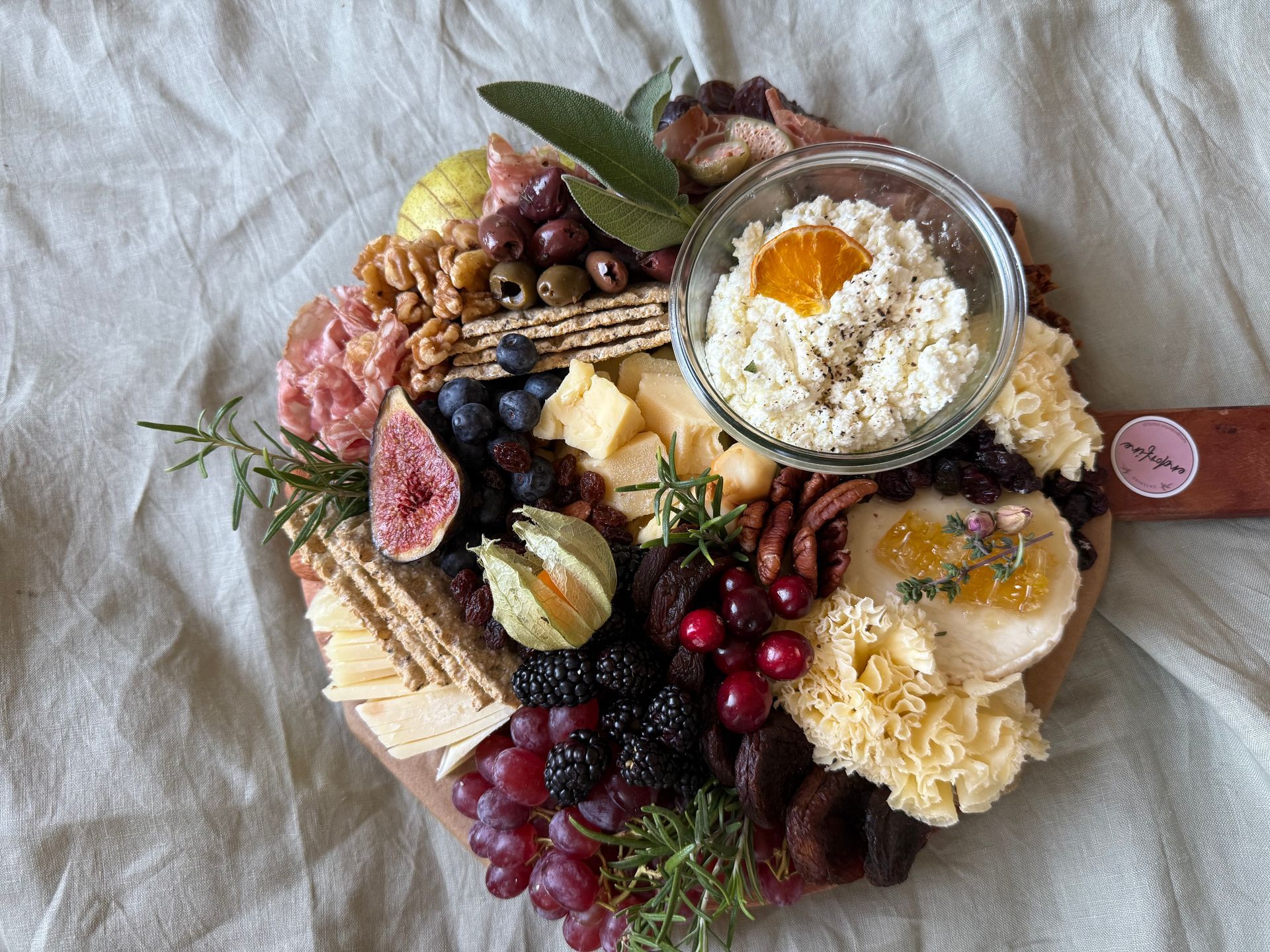 - Charcuterie, Weich & Hartkäse, Nüsse, Obst der Saison, Oliven, Kräuter, selbstgemachte Dips & Bowls, Fingerfood, Salate